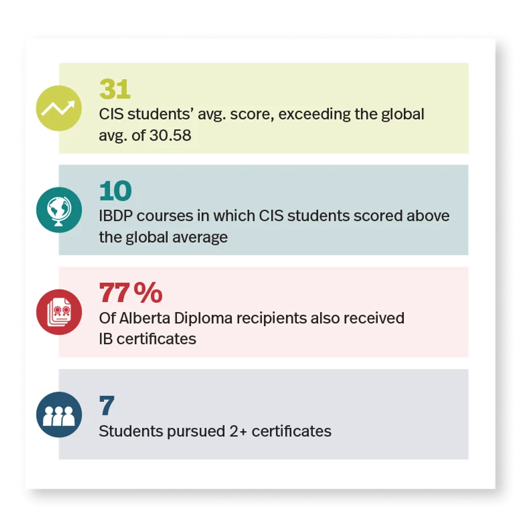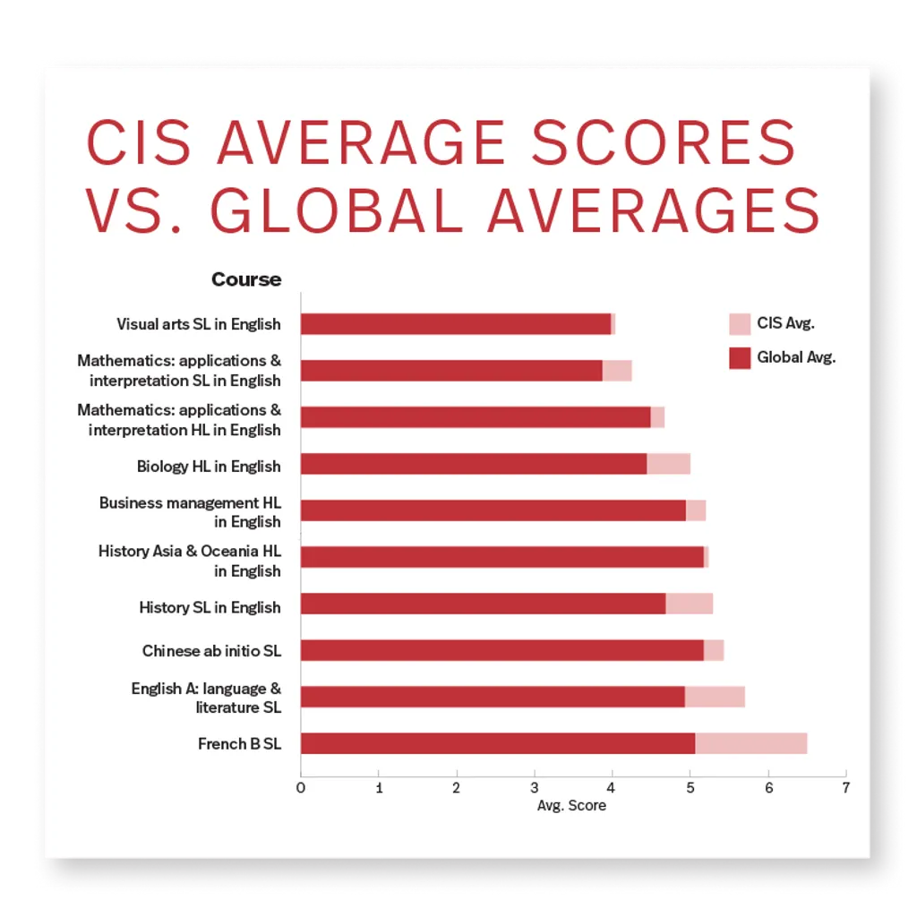 In 2025, IBDP students at CIS achieved an average score of 31, which exceeded the global average of 30.58. Our IBDP students scored higher than the global average in 10 subjects and achieved a 100% IBDP exam pass rate. As a school community, we are incredibly proud.