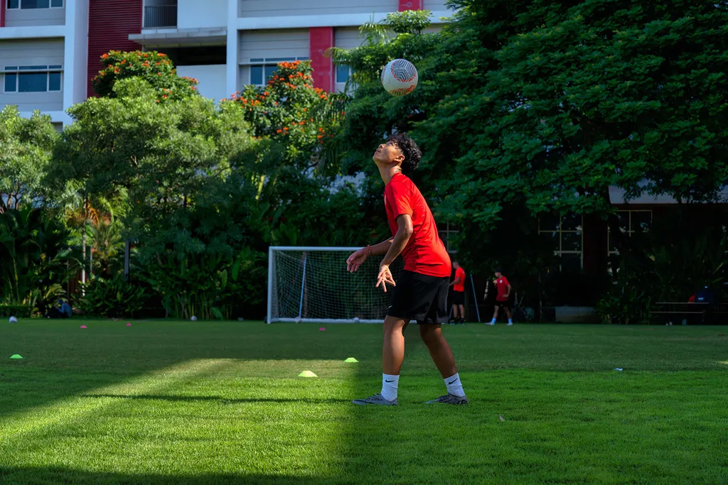 Soccer Academy is open to CIS students in Grades 6–12. Enrolled students receive up to 15 hours of coaching per week after school and on weekends. One-to-one coaching, technical and tactical coaching, skills and futsal training, strength and conditioning, injury prevention, video analysis and sport psychology are provided. Training takes place on our natural grass, regulation-size soccer field and in our well-equipped fitness centre at Koh Pich Campus.